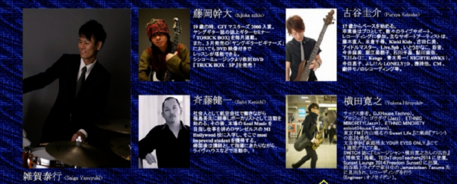 イベント詳細 日付: 2017年6月7日 7:30 PM – 9:30 PM 会場: BAR CIRCLE 【メンバー】 雑賀泰行(ds)古谷圭介(b)藤岡幹大(g)横田寛之(sax)斉藤健一(vo) 【チャ … 続きを読む 6/7(水) [変拍子] 変拍子セッション @新宿CIRCLE