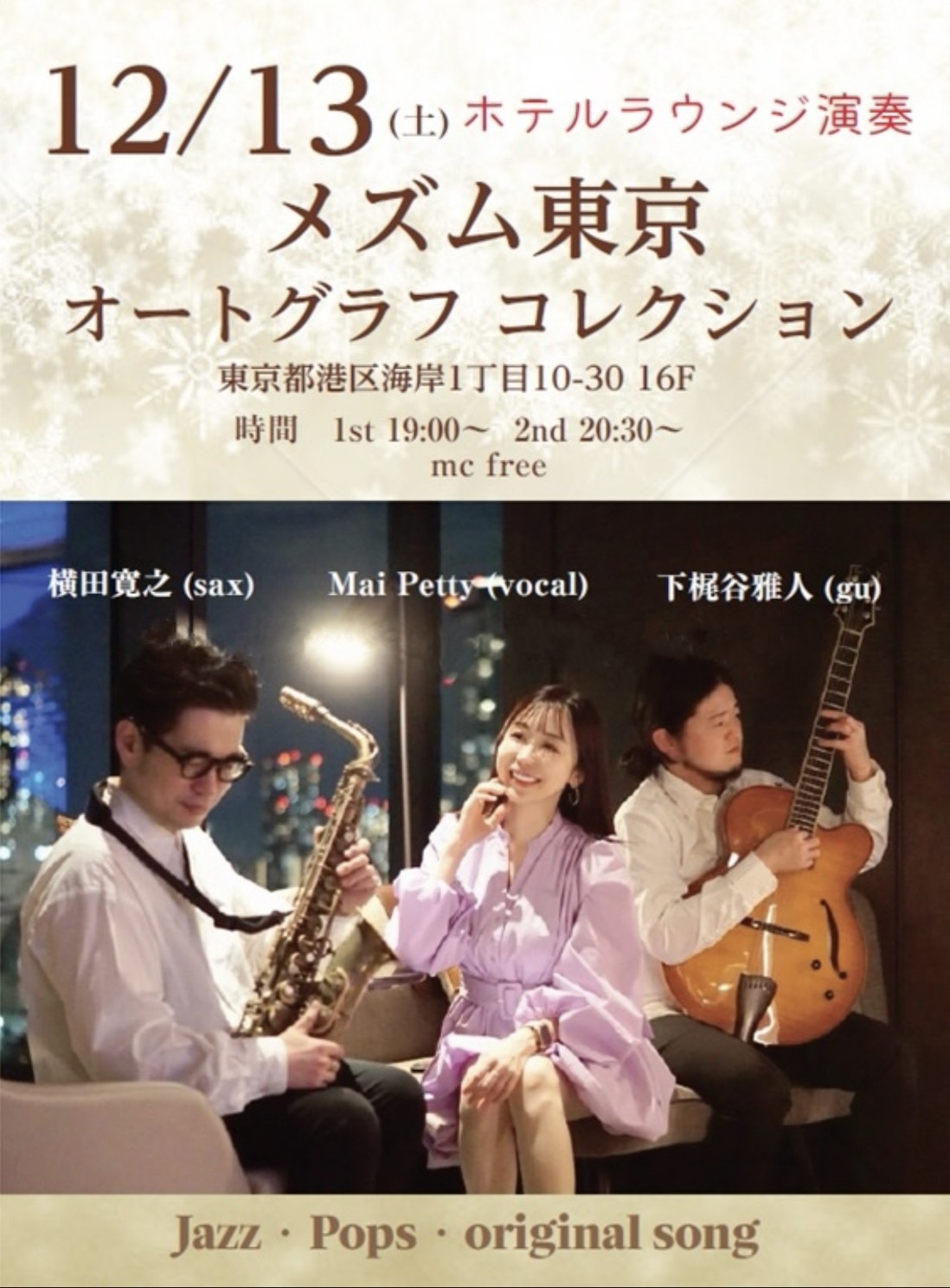 ■12/13(土) 19:00 [Jazz,Pops] Mai Petty @ 浜松町 メズム東京